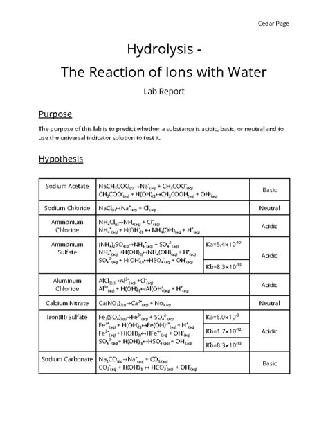 Heath Chemistry Lab 20d Hydrolysis Answers